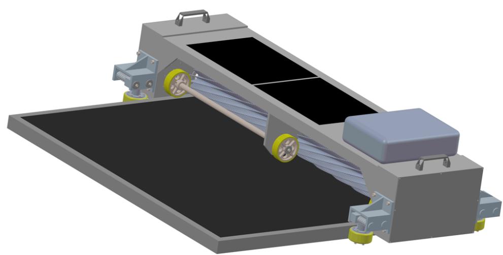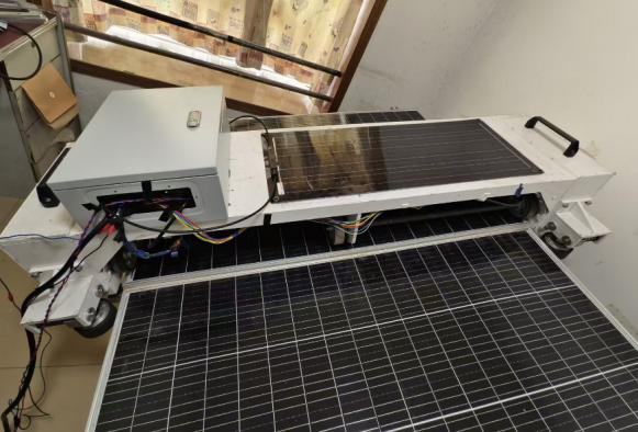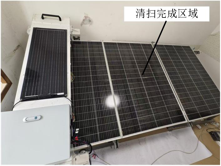 The photovoltaic cleaning robot is designed to meet the following four requirements due to the complex geographical environment of photovoltaic power stations and the significant differences in the installation methods of photovoltaic panels: First, the walking performance must enable stable movement on an inclined plane within a certain angle to avoid spinning or falling, ensuring the safety and reliability of the cleaning operation; Second, the cleaning performance should achieve water-free cleaning, simplify the structure and transmission method of the cleaning device to cover the entire axis cleaning, allowing dust to slide off, and the cleaning brush needs to be soft and resilient to prevent damage to the photovoltaic panels; Third, the through-ability must adapt to the slope and height differences between panels caused by terrain and foundation settlement, ensuring smooth operation on the surface of the photovoltaic panels; Fourth, self-energy supply, avoiding the dragging force and swaying problems caused by power supply through cables, improving the stability and continuity of the operation. The through-ability and cleaning ability of this robot have been tested experimentally. The experimental results show that the robot's maximum cleaning efficiency can reach 97.93%, the maximum obstacle clearance height is 15mm, and the maximum climbing angle is 15°. During operation, the robot did not experience any stalling or stagnation, the walking posture was stable, and it could efficiently clean the dust on the surface of the photovoltaic panels.